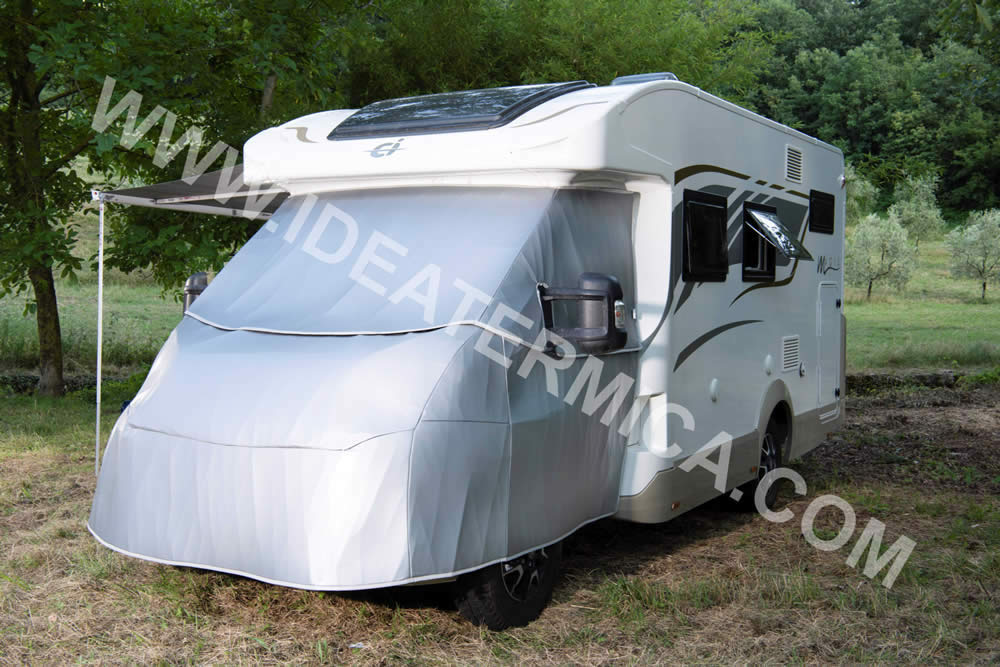 Kit oscurante completo per proteggere la cabina del vostro camper (vetri e cofano). Realizzato con un “TESSUTO”PVC idro-oleorepellente,riflettente ai raggi del sole, quindi efficacissimo anche d’estate, con uno spessore coibentante di 6 mm, con bordo in tessuto, risolve completamente il problema CALDO -FREDDO, condensa-ghiaccio in cabina. Nella parte superiore il montaggio avviene tramite elastici da inserire negli angoli superiori degli sportelli e nella parte centrale, tramite una linguetta che alla chiusura bloccherà tutto. Il montaggio della parte inferiore avviene tramite elastici da posizionare agli angoli inferiori. I due pezzi (oscurante vetri+oscurante cofano) si uniscono tra di loro tramite velcro. Si ripone comodamente in una sacca con cerniera di 70x30 cm (compresa).